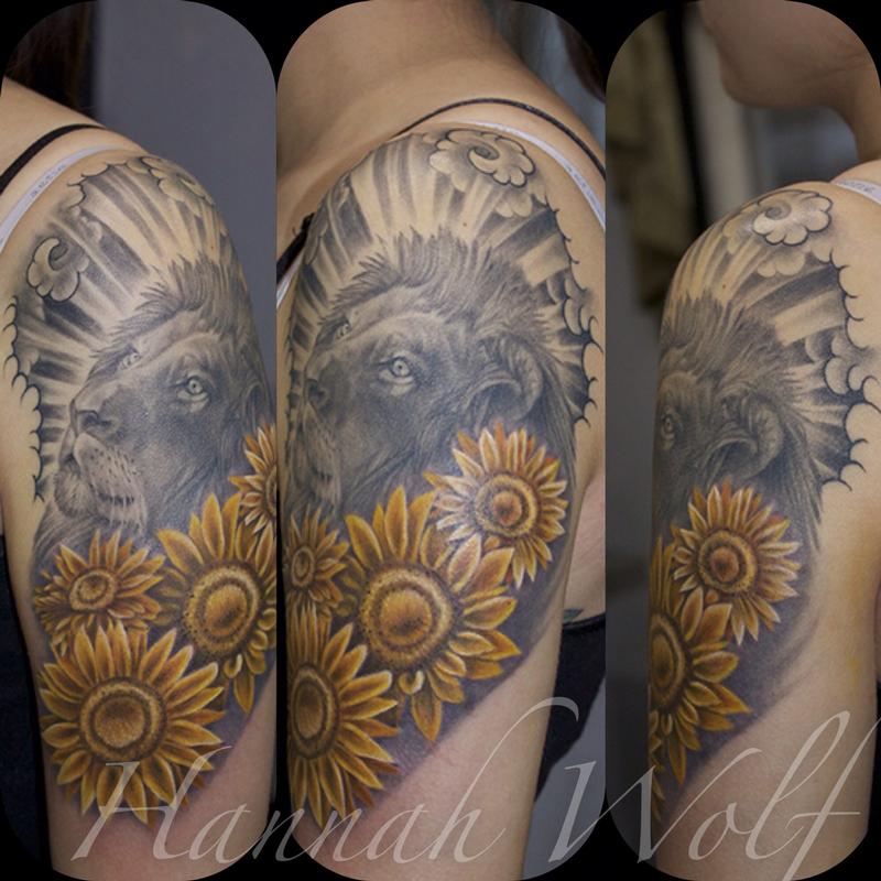 Lion And Sunflowers By Hannah Wolf Tattoonow